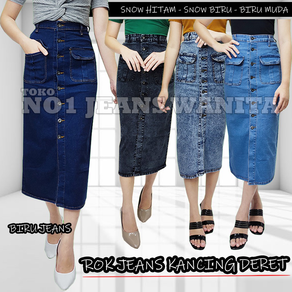 TERMURAH ROK JEANS KANCING FULL WANITA ROK JEANS DENIM Sumber : shopee.co.id